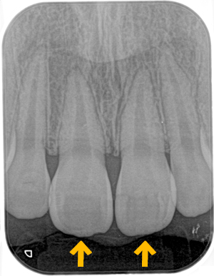 ぶつけた歯のレントゲンを撮影して歯根や骨に異常がないことを確認しました。